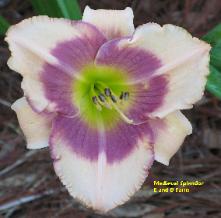 evergreen, tetraploid, cream with dark purple eye - Stout Silver Medal 2004