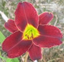 MIDNIGHT MAGIC - $6 - Kinnebrew 1979, 5.5" bloom, 28" tall, early mid season, evergreen,