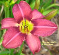 MOUNTAIN VIOLET - $6 - Munson, RW 1973, 28" tall, 5" bloom, mid season, rebloom, evergreen,