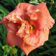 semi-evergreen, tetraploid, rose red tinted coppery peach with yellow green throat