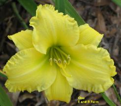 OPEN MY EYES - display - Grace, L. 2001, 22" tall, 5.25" bloom, early season, evergreen, tetraploid, fragrant, orange with dark purple eye above green heart throat