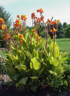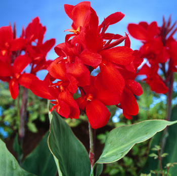 | CANNA Great for color in borders or perennial beds. Plant in full sun and water and fertilize for best results. Cannas attract hummingbirds. |
